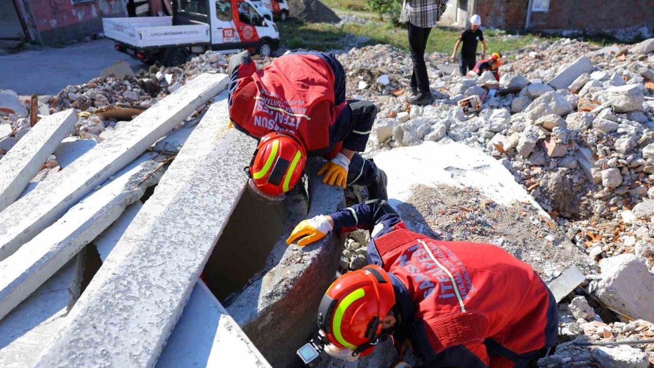 Senaryo gereği meydana gelen 6.4 şiddetindeki deprem sonrası Canik ilçesi Soğuksu Mahallesinde çöken bir garajda mahsur kalanlar kurtarıldı. Yine senaryo gereği deprem sırasında 5 katlı bir binanın 2’nci katında çıkan yangına müdahale edildi. Dumandan etkilenen 2’si çocuk 1 kişi de kurtarılarak ambulansla hastaneye götürüldü.