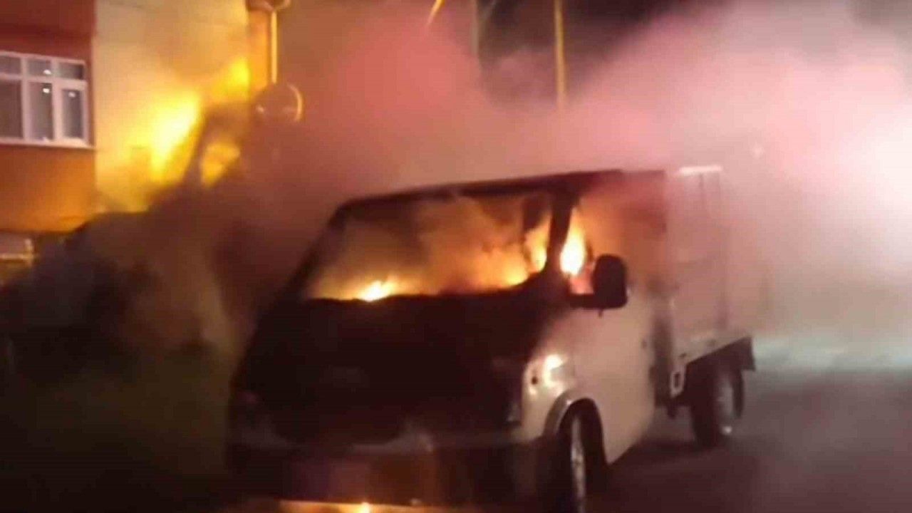 Samsun’da park halindeki kamyonet alev alev yandı.