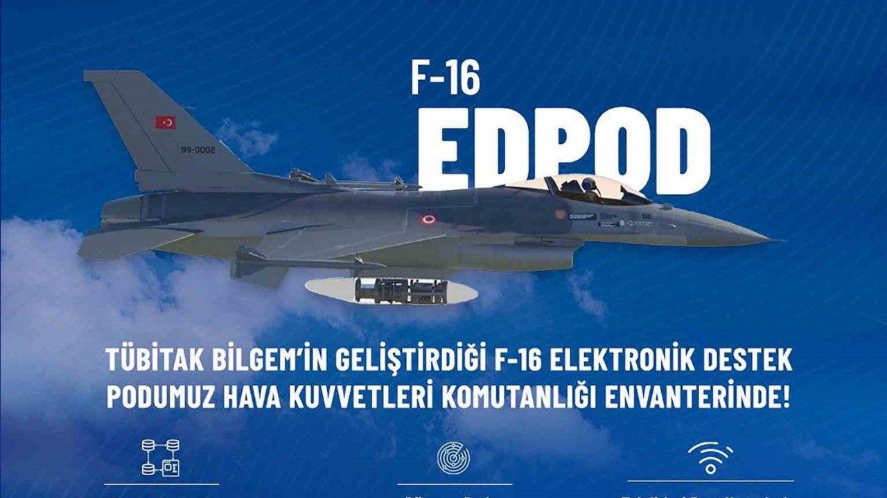 Sanayi ve Teknoloji Bakanı Mehmet Fatih Kacır, TÜBİTAK Bilişim ve Bilgi Güvenliği İleri Teknolojiler Araştırma Merkezi (BİLGEM) ana yükleniciliğinde geliştirilen Elektronik Destek Podunun (EDPOD), gerçek radar sistemlerine karşı uçuşlu testleri başarı ile tamamlayarak Hava Kuvvetleri Komutanlığı envanterine girdiğini açıkladı.