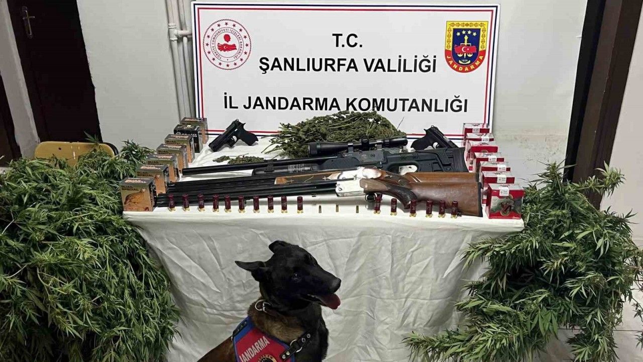 Şanlıurfa İl Jandarma Komutanlığı ekiplerince narkotik suçlarla mücadele kapsamında, Haran ilçesinde uyuşturucu madde bulundurduğu tespit edilen 3 şüpheli şahsın adresine operasyon düzenlendi. Şahısların ev ve eklentilerine de yapılan aramada 1 kilo 508 gram kubar esrar, 2 kök kenevir bitkisi, 2 adet ruhsatsız tabanca, 2 adet ruhsatsız av tüfeği, 2 adet tabanca şarjörü, bin 75 adet farklı tür ve ebatlarda fişek ele geçirildi.