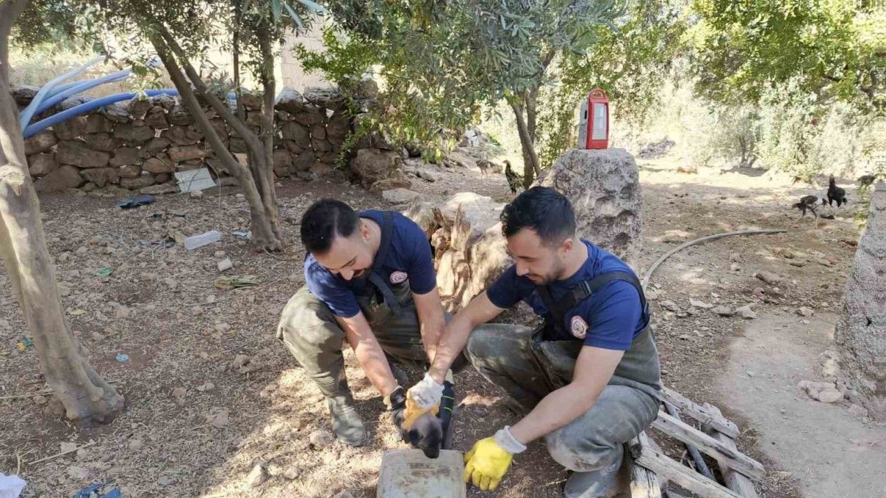 Şanlıurfa’nın Karaköprü ilçesinde foseptik çukuruna düşen köpek yavrusu, itfaiye ekipleri tarafından kurtarıldı.