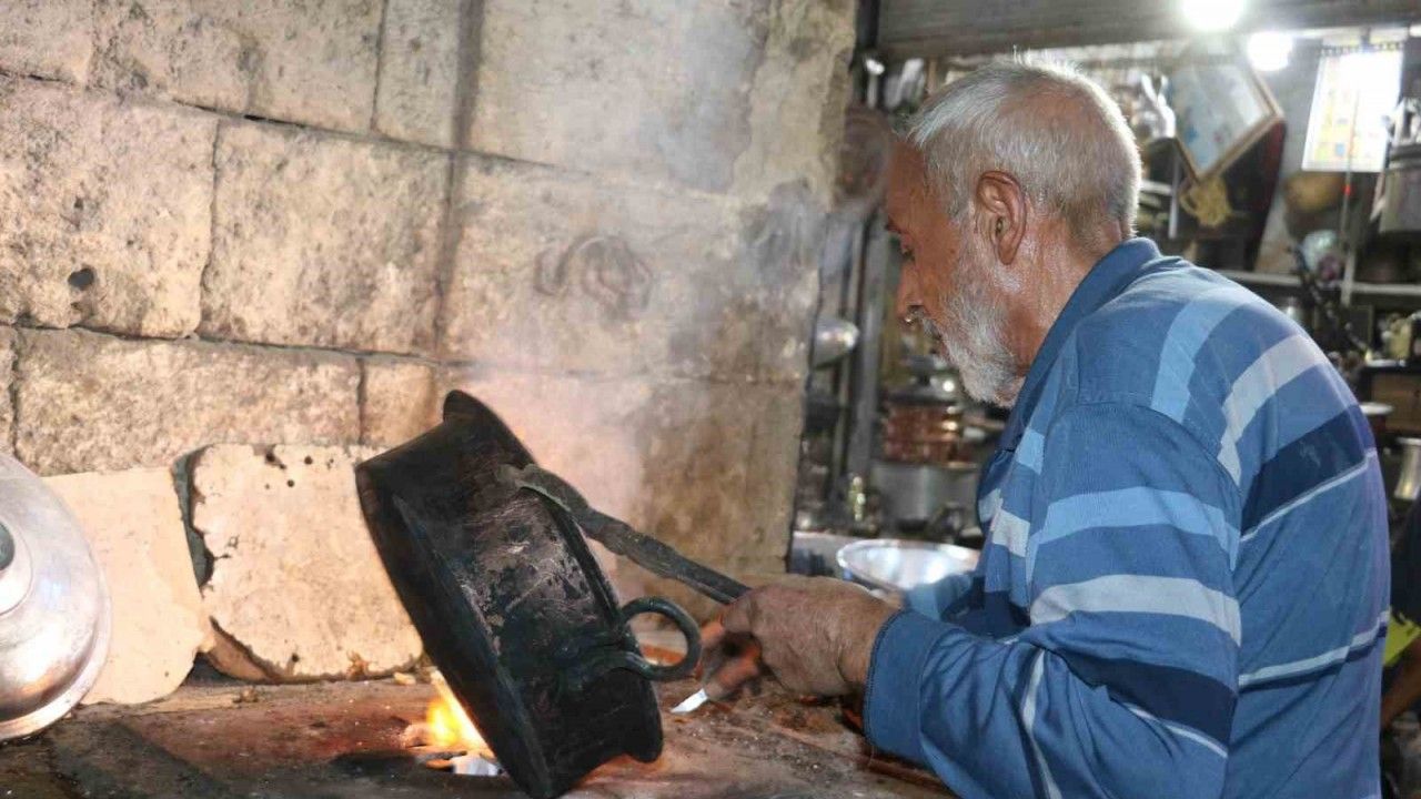 Şanlıurfa’da 75 yıldır tarihi bakırcılar çarşısındaki 20 metrekarelik dükkanında kalaycılık yapan 86 yaşındaki Mustafa Ozan, gelişen teknolojiye rağmen mesleğini sürdürüyor.
