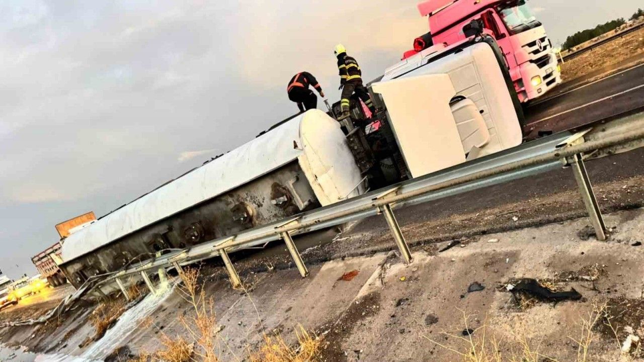 Kaza, Viranşehir-Şanlıurfa karayolu Eyüp Nebi Kavşağı yakınlarında meydana geldi. Edinilen bilgiye göre, Veysi E. idaresindeki 47 ET 954 plakalı yakıt tankeri, Kasım Ö. yönetimindeki 63 AHE 114 plakalı otomobile çarptı. Kazada otomobilde bulunan Şükran Ö., Sara Ö., Kasım Ö., Abdulcelil Ö., Ceren Ö. ve Veysi E. yaralandı. İhbar üzerine olay yerine itfaiye, sağlık ve polis ekipleri sevk edildi. Yaralılar, olay yerindeki ilk müdahalelerinin ardından Viranşehir Devlet Hastanesine kaldırıldı. Kazada tankerin devrilmesi sonucu tonlarca mazot yola döküldü. İtfaiye ve jandarma ekipleri, muhtemel bir yangına karşı bölgede güvenlik önlemi aldı.