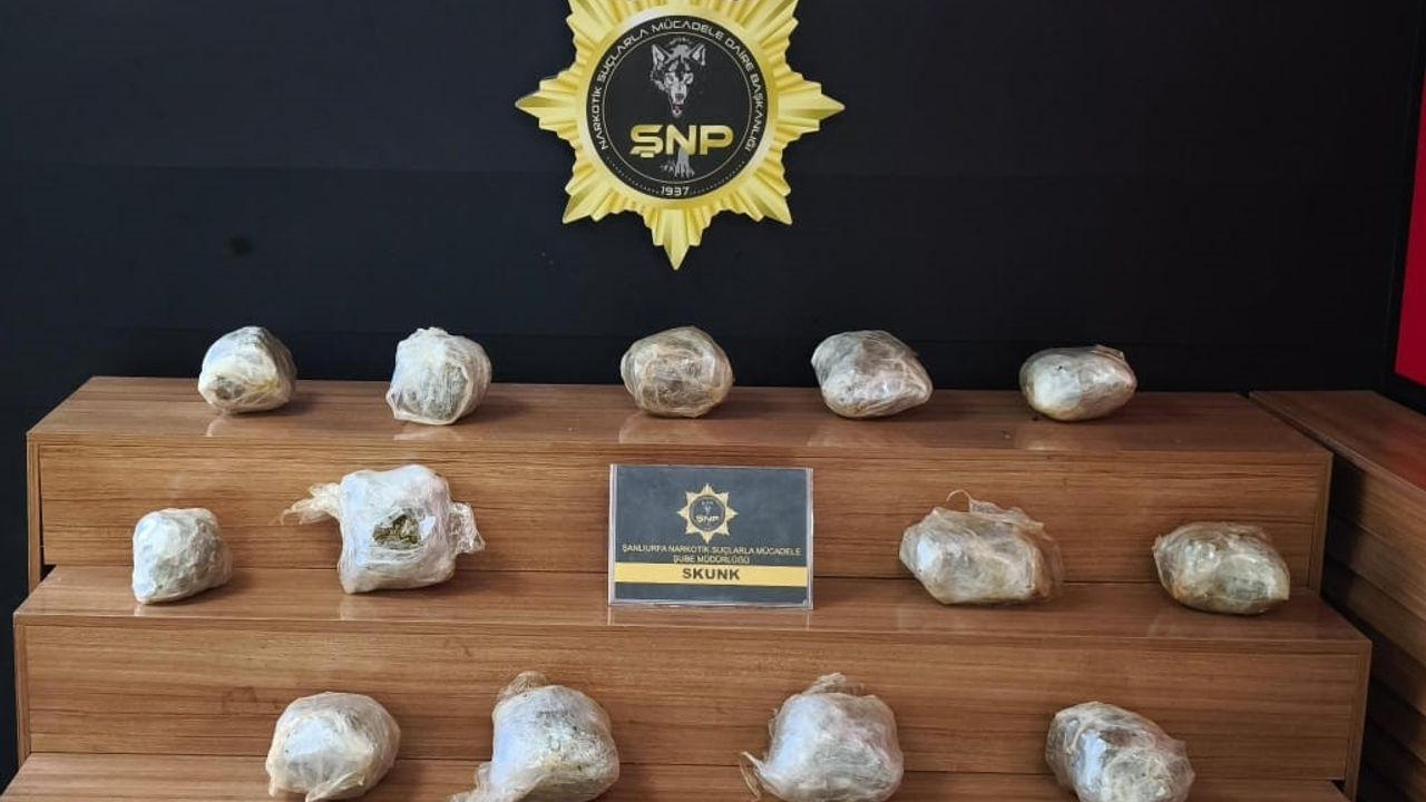 Şanlıurfa’da otomobilde 13 parça halinde 7 kilo 150 gram skunk ele geçirildi, 1 şüpheli gözaltına alındı.