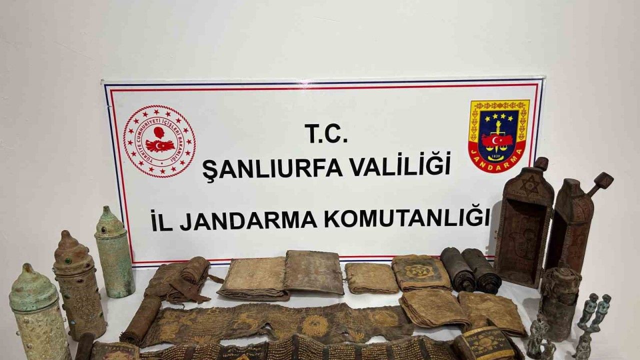 Şanlıurfa İl Jandarma Komutanlığı ekiplerince "Kültür ve Tabiat Varlıklarının Korunması" kapsamında düzenlenen operasyonda tarihi eser niteliğinde çok sayıda obje ele geçirildi, 2 şüpheli gözaltına alındı.