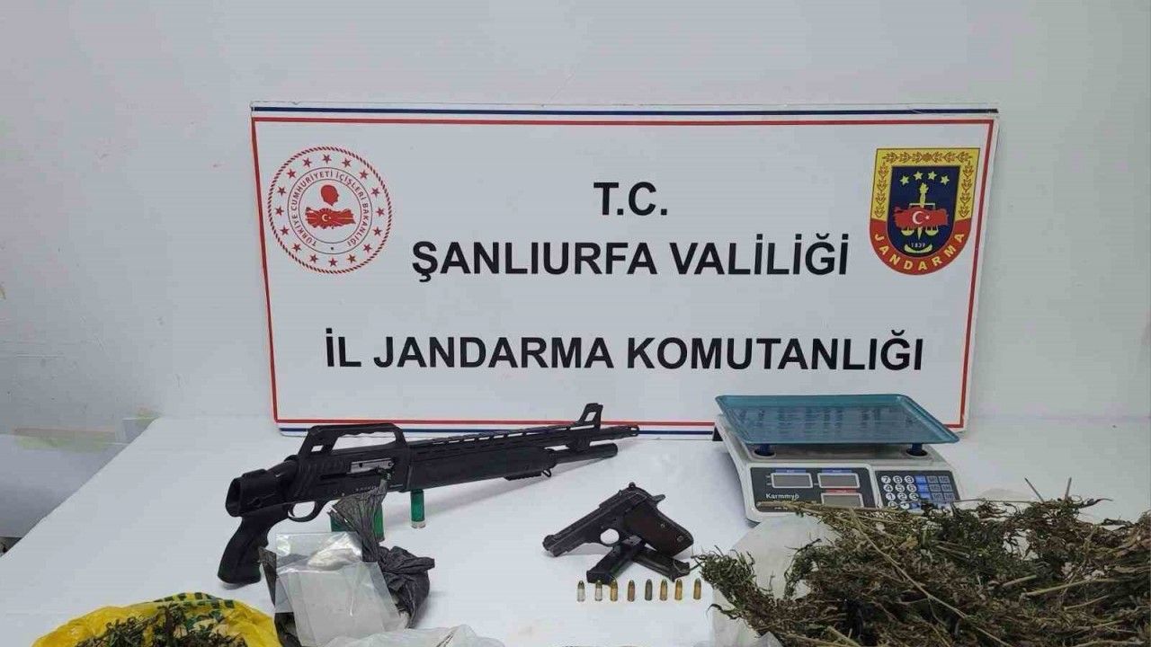 Şanlıurfa’da jandarma ekipleri tarafından belirlenen adrese düzenlenen operasyon sonucu uyuşturucu madde ve silah ele geçirildi.