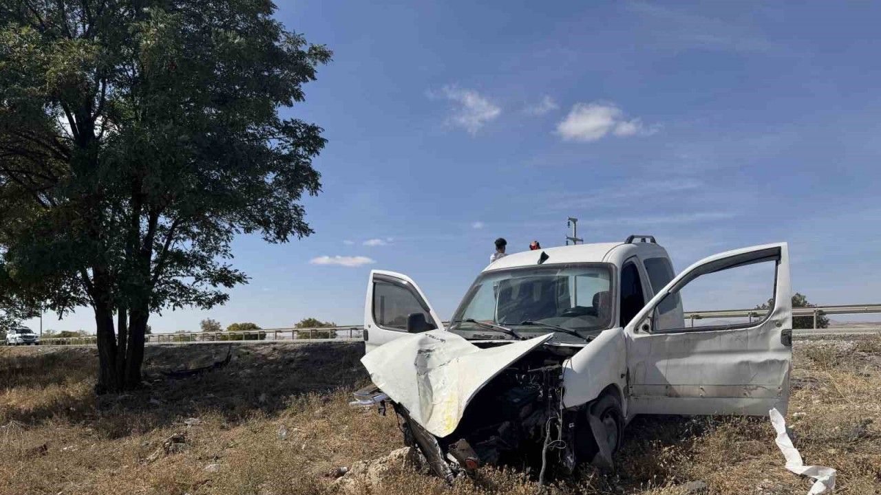 Konya’nın Kulu ilçesinde kontrolden çıkan hafif ticari araç şarampole düşerken, araçtakiler kazayı hafif atlattı.