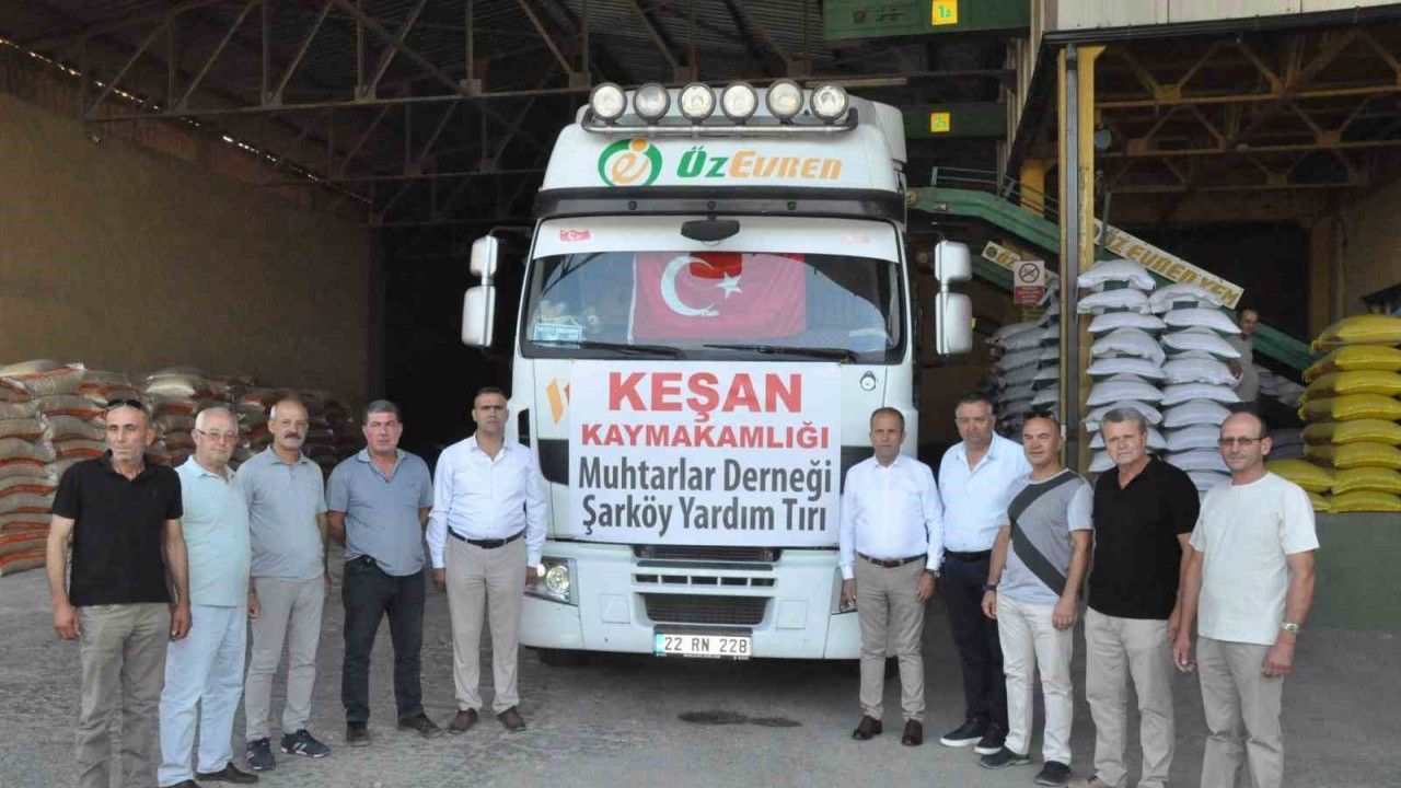 Tekirdağ’ın Şarköy ilçesinde meydana gelen yangında zarar gören üreticilere destek için yardım kampanyası başlatan Keşan Köy ve Mahalle Muhtarları Derneği, bir tır süt yemini Şarköy’e gönderdi.