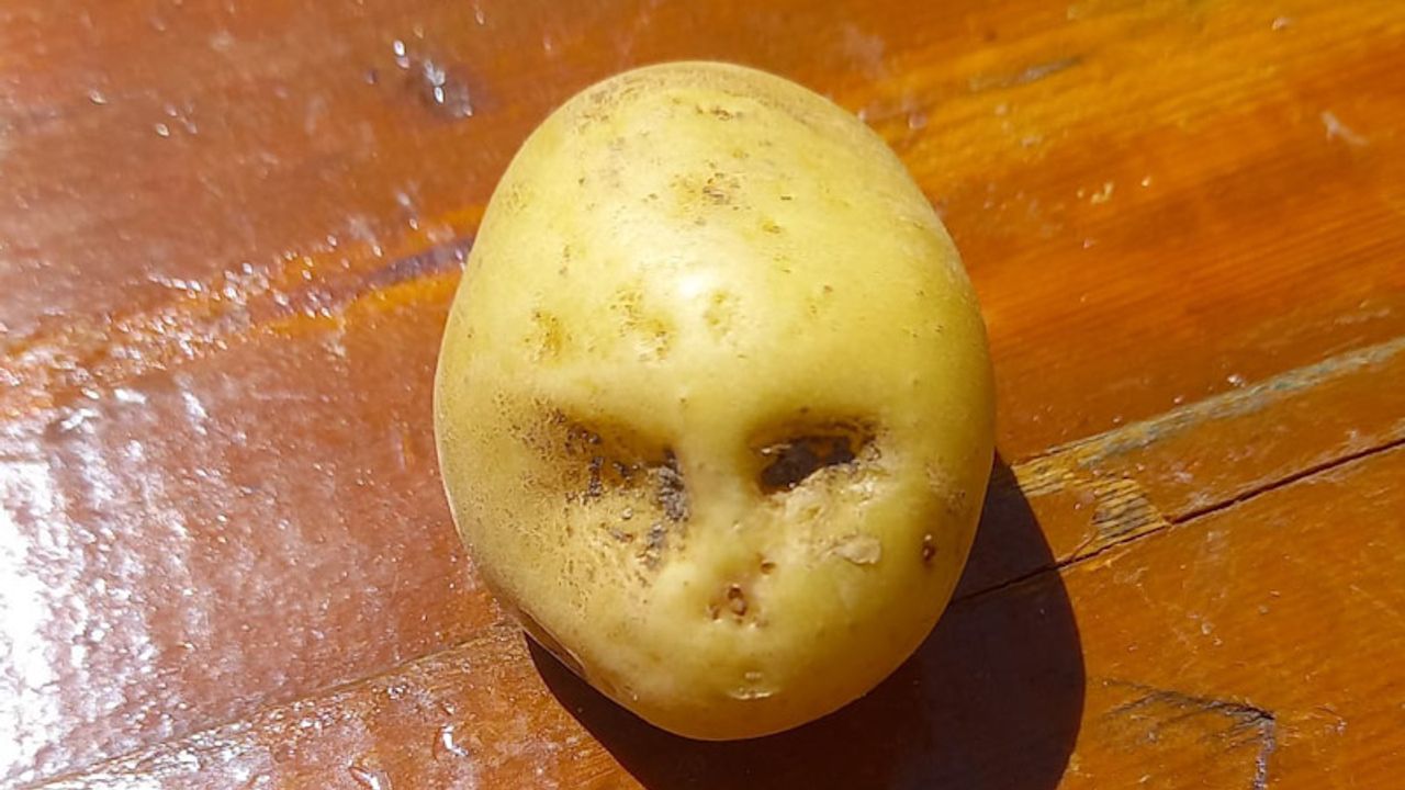 Patatesin yüzeyindeki girinti ve çıkıntılar, tıpkı çocuk yüzünü andıran bir şekil oluşturdu. Görenler, patatesi eline alır almaz gülmekten kendini alamadı.