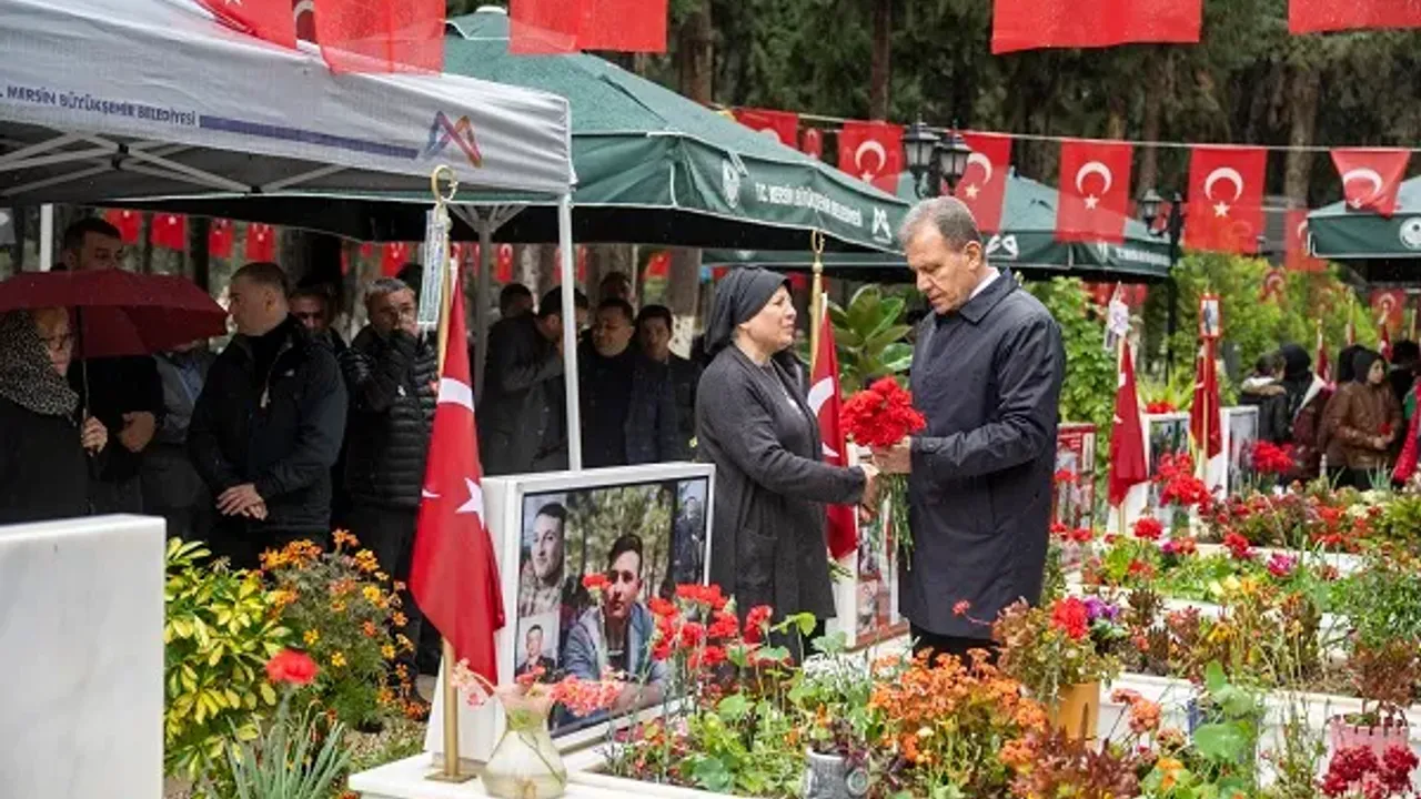 Başkan Seçer, 18 Mart Şehitleri Anma Günü ve Çanakkale Deniz Zaferi’nin 108. yıl dönümü kapsamında Mersin Şehitliği’nde düzenlenen programa katıldı.