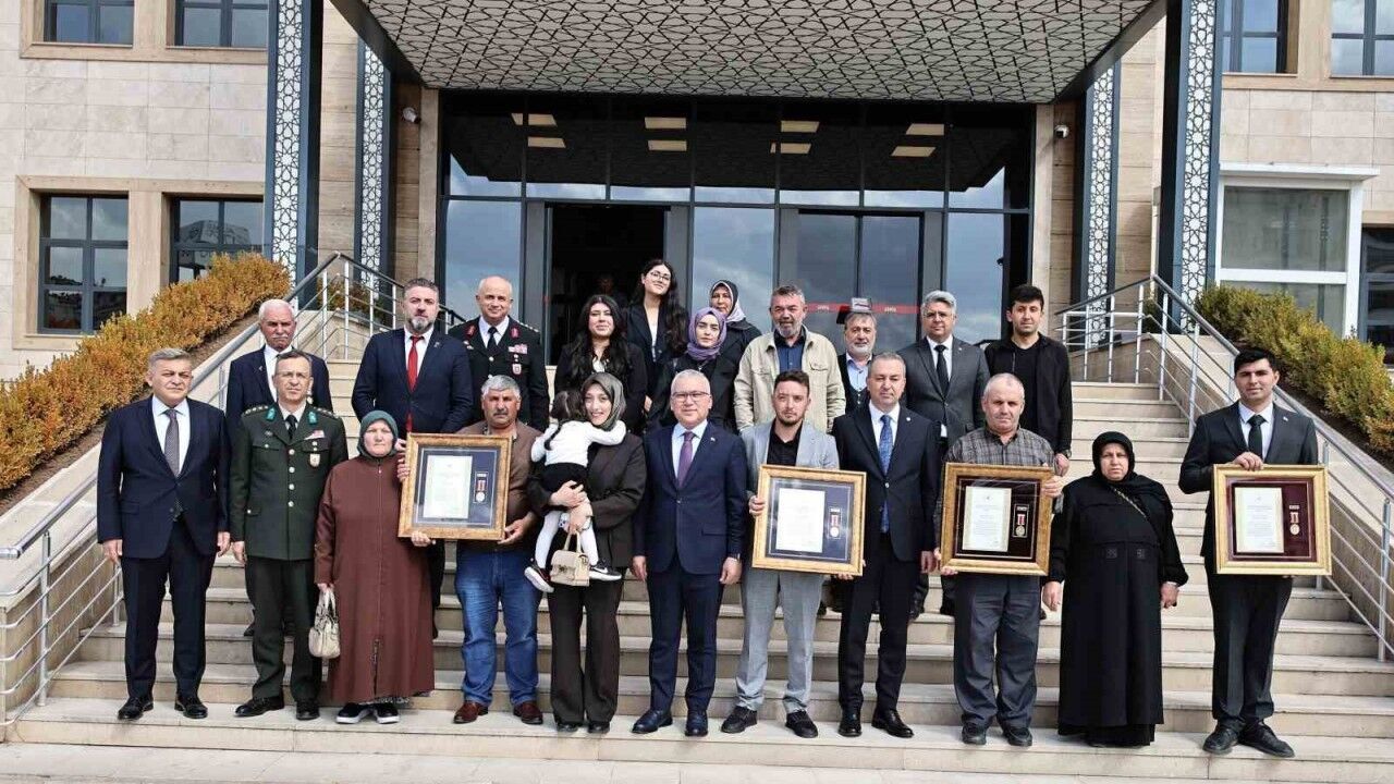 Törende, Malul Gazi Tnk. Uzm. Çvş. Veyis Başel, Şehit P. Uzm. Çvş. Özkan Lale, Malul P. Uzm. Çvş. Azmi Şahin ve Şehit P. Uzm. Çvş. Ömer Yıldırım’ın madalya ve beratları, Vali Şimşek tarafından sunuldu.