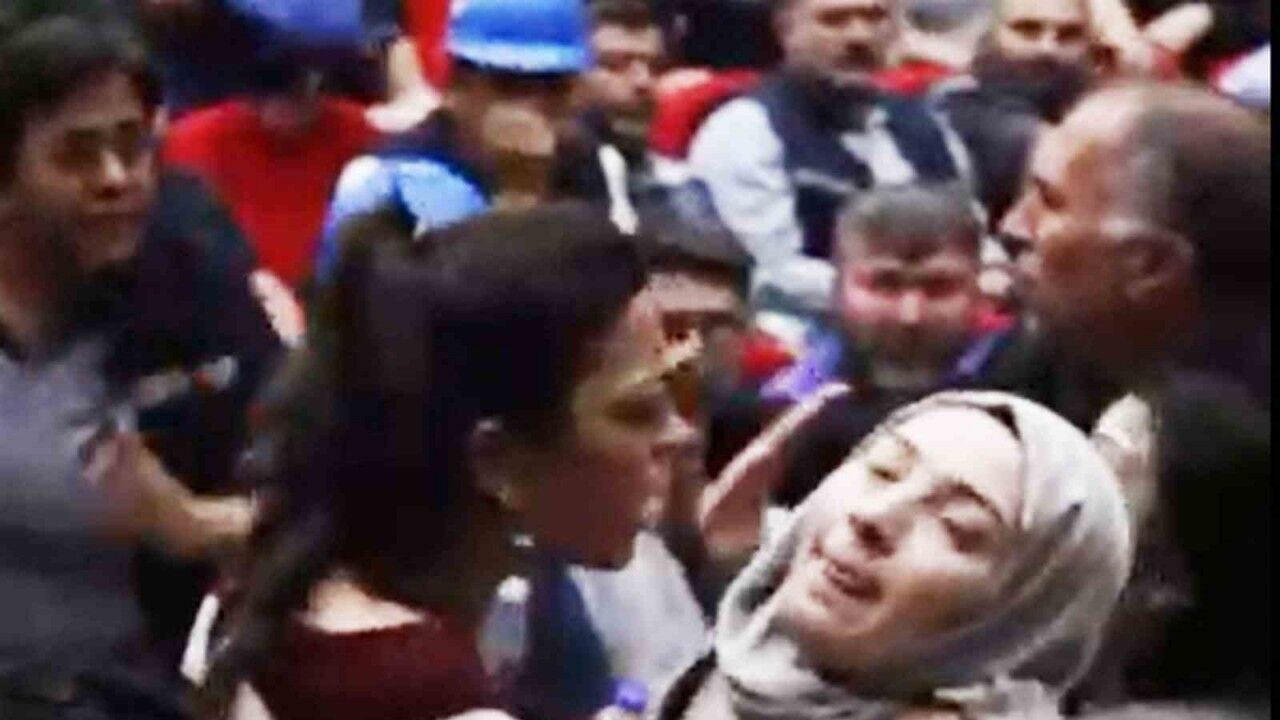 Sendika üyesi kadın, başörtülü basın mensubunun boğazını sıktı