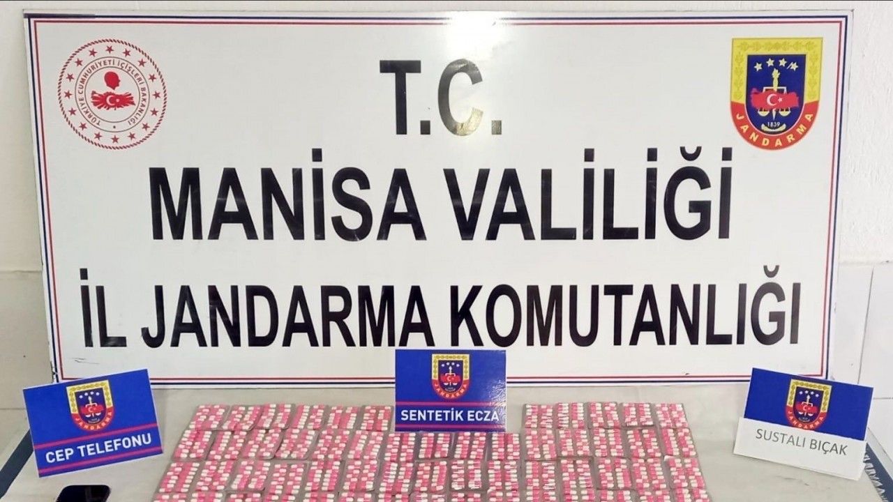 Edinilen bilgilere göre, Manisa İl Jandarma Komutanlığı İstihbarat ve KOM Şube Müdürlüğü ile Soma İlçe Jandarma Komutanlığı ekiplerinin koordineli çalışması sonucu, Y.K. (25) isimli şahsın üzerinde ve ikametinde arama yapıldı. Yapılan aramalarda toplam 2 bin 860 adet sentetik ecza hap, 1 adet bıçak ve 1 adet cep telefonu ele geçirildi.