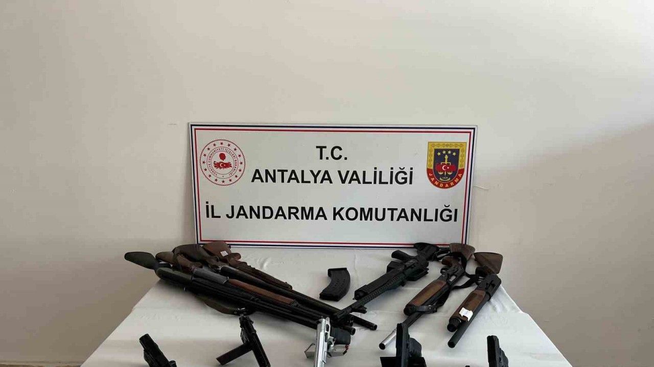 Antalya İl Jandarma Komutanlığı’nın Serik’te 5 adrese düzenlediği operasyonda tabanca ve av tüfeklerinin de aralarında bulunduğu çok sayıda silah ve mühimmat ele geçirildi.