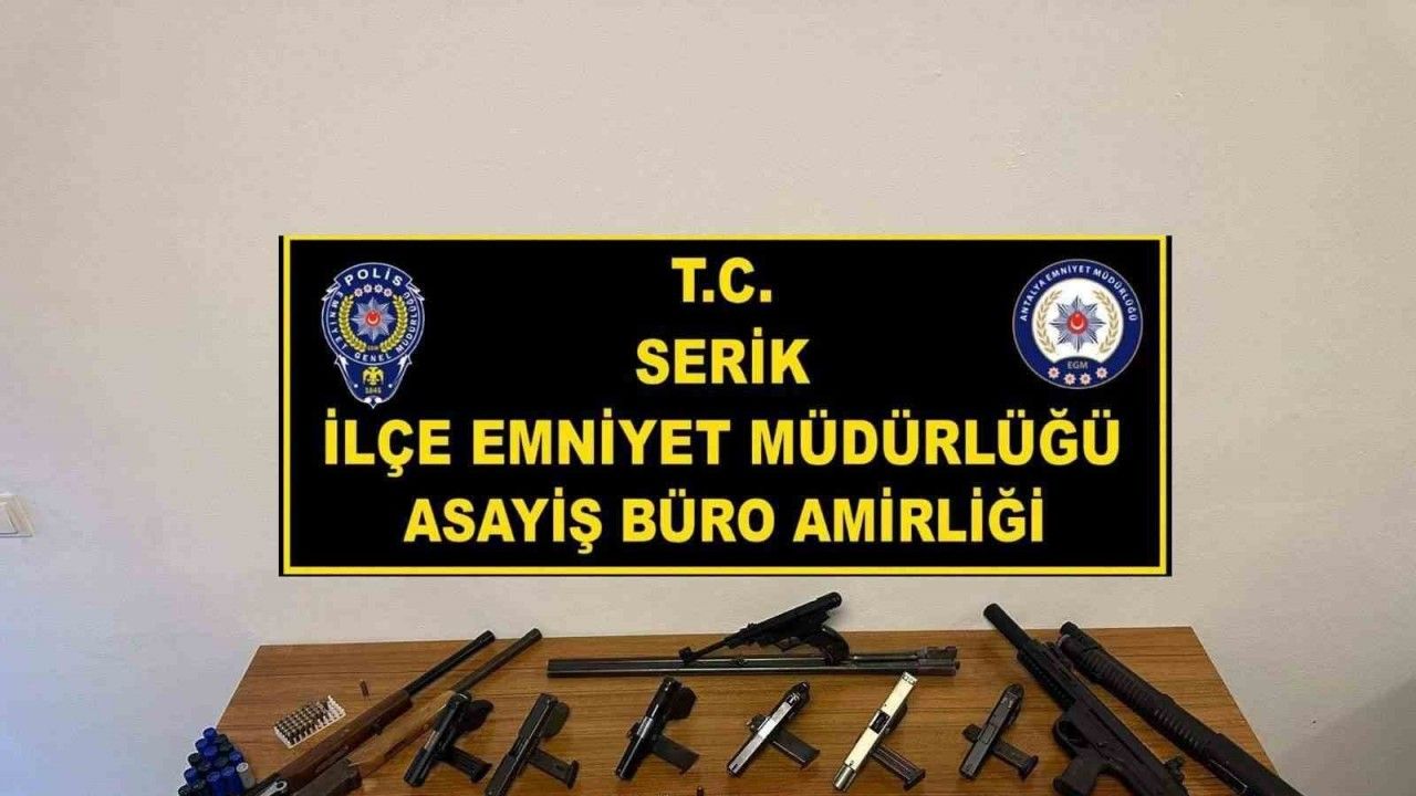 Antalya’nın Serik ilçesinde polis ekiplerince gerçekleştirilen eş zamanlı operasyonda, çok sayıda ruhsatsız silah, uyuşturucu madde ve kesici alet ele geçirildi. Operasyonda 16 şüpheli gözaltına alındı.