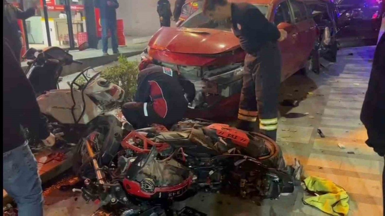 Edinilen bilgiye göre kaza, saat 22.00 sıralarında Atatürk Caddesi’nde meydana geldi. M.Ç. yönetimindeki otomobil, seyir halindeyken şerit ihlali yapması sonucu sağ taraftan hızla gelen Y.K. idaresindeki araca çarptı. Çarpmanın etkisiyle park halindeki 2 araç ve 3 motosiklet de hasar gördü. Toplam 7 aracın karıştığı kazada E.D. ve H.Ö. hafif şekilde yaralandı. Yaralılar olay yerine gelen sağlık ekiplerinin ilk müdahalesinin ardından hastaneye kaldırıldı. Yaralıların hayati tehlikesinin bulunmadığı öğrenildi. Kaza anı ise saniye saniye çevredeki iş yerlerinin güvenlik kamerasına yansıdı.
