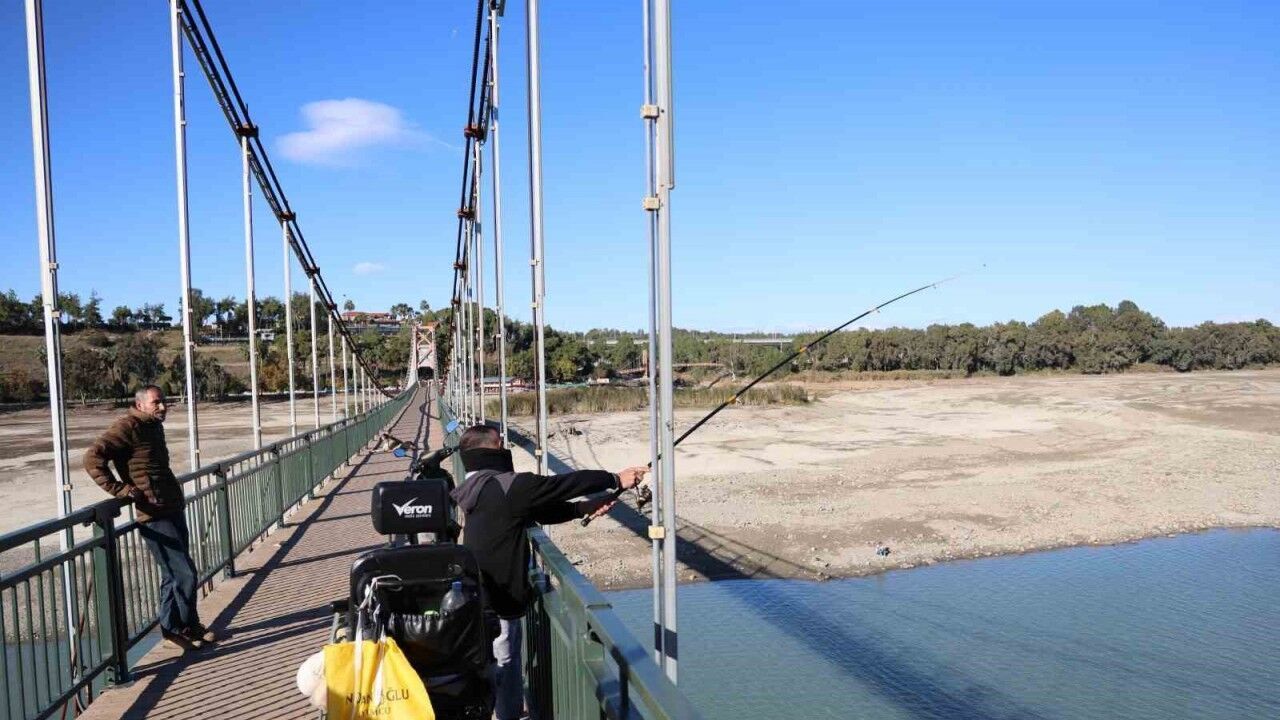 Adana’da kuraklık nedeniyle Seyhan Baraj Gölü’nün kapakları kapanınca Seyhan Nehri’nde sular çekildi. Nehirde sadece balıklar için can suyu kalırken, vatandaşlar nehirde balık avladı.