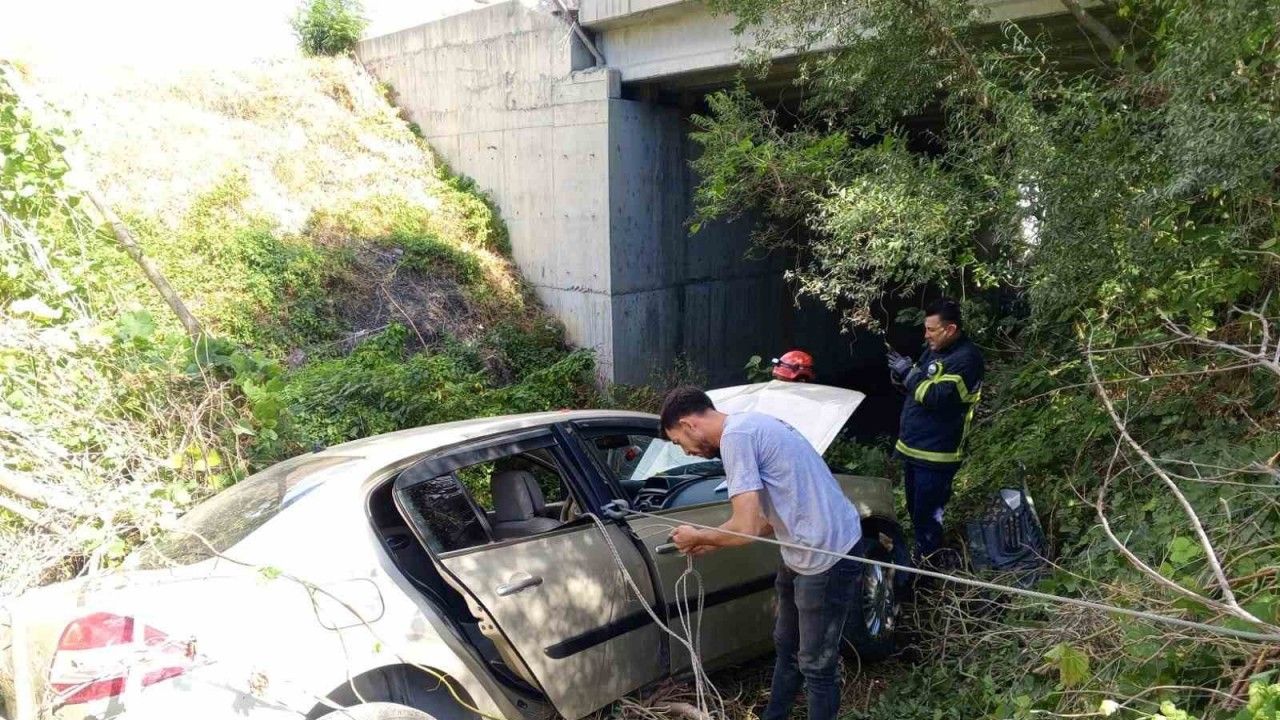 Bilecik’te seyir halindeyken bir tekerleğinin fırlaması sonucu kontrolden çıkan otomobil dere yatağına uçarken 1’i ağır 2 kişi yaralandı.