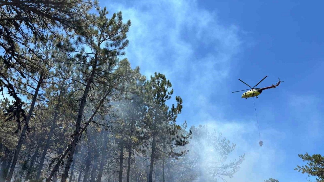 Eskişehir’in Seyitgazi ilçesinde çıkan orman yangını kontrol altına alınırken, soğutma çalışmaları devam ediyor.