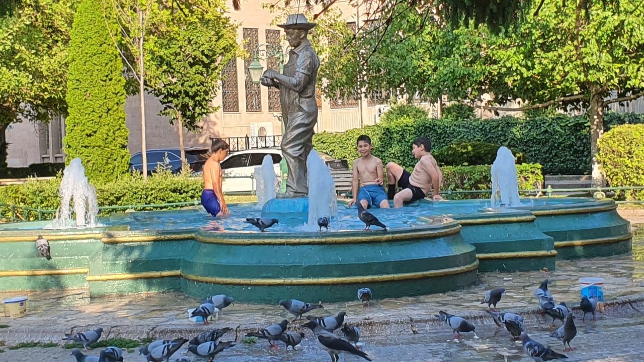 Eskişehir’de sıcak havadan bunalan çocuklar süs havuzuna girerek tehlikeli olmasına rağmen süs havuzuna girerek serinlemeye çalıştı.