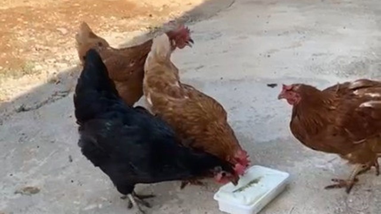 Tavukların dondurmayı yediği görüntüler ise ilgi gördü. Görüntülerde tavukların dondurmayı büyük iştahla yemesi dikkat çekti.