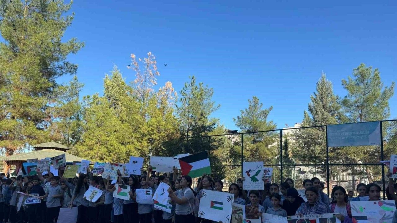 Siirt’in Kurtalan ilçesindeki Selahaddin Eyyubi Ortaokulu öğretmen ve öğrencileri, Gazze halkına destek olmak amacıyla etkinlik düzenledi.