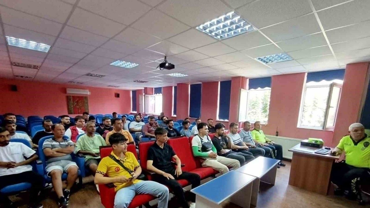 İlçe Emniyet Müdürlüğü Trafik Denetleme Büro Amirliği tarafından ilçede faaliyet gösteren motokuryelere yönelik trafik eğitimi düzenlendi. İlçe Emniyet Müdürlüğü Brifing Salonu’nda gerçekleştirilen programa katılan motokuryelere genel trafik kuralları, motosiklet sürüş güvenliği, Yetki Belgesi (P1) uygulamaları ve mevzuattaki güncel değişiklikler hakkında detaylı bilgiler aktarıldı. Katılımcılar, hem teorik hem de uygulamaya dönük bilgilerle bilinçlendirildi.