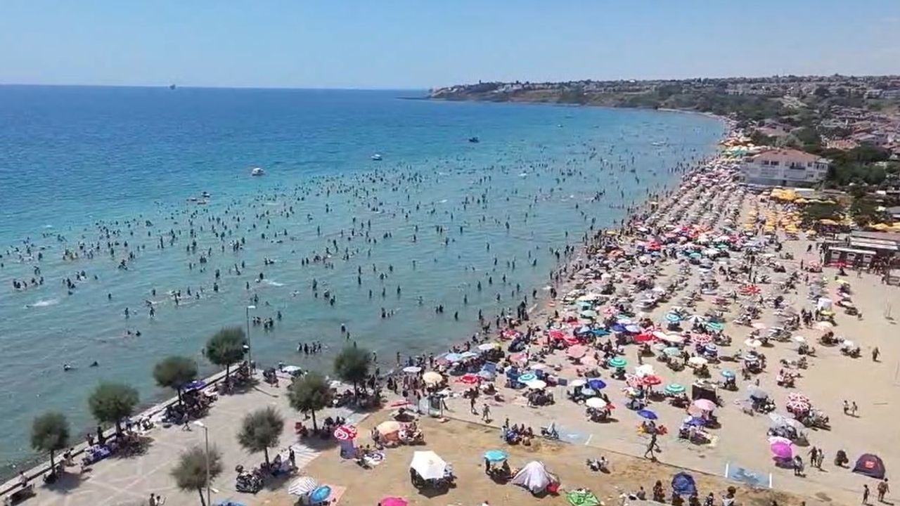 Afrika kökenli sıcak hava dalgasının etkisini göstermesiyle beraber Silivri Kumluk Plajı’nda yoğunluk oluştu, otoparklar tamamen doldu.