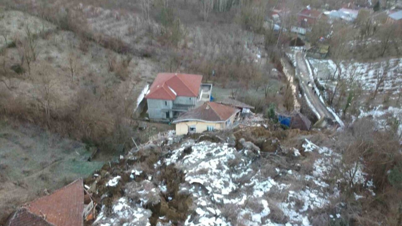 Bölgede jandarma ekipleri geniş güvenlik tedbiri aldı. Heyelan bölgesi dron ile görüntülendi. Görüntülerde, dev toprak kitlesinin kayarak evleri sürüklediği görülüyor.
