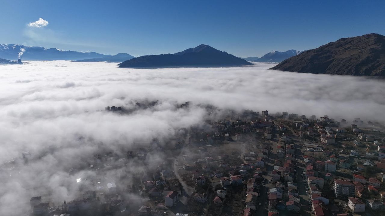 Gökyüzünün masmavi olduğu bu berrak havada sisle kaplı vadi arasındaki kontrast, Tufanbeyli'nin kış aylarında ortaya çıkan eşsiz atmosferini bir kez daha gözler önüne serdi.