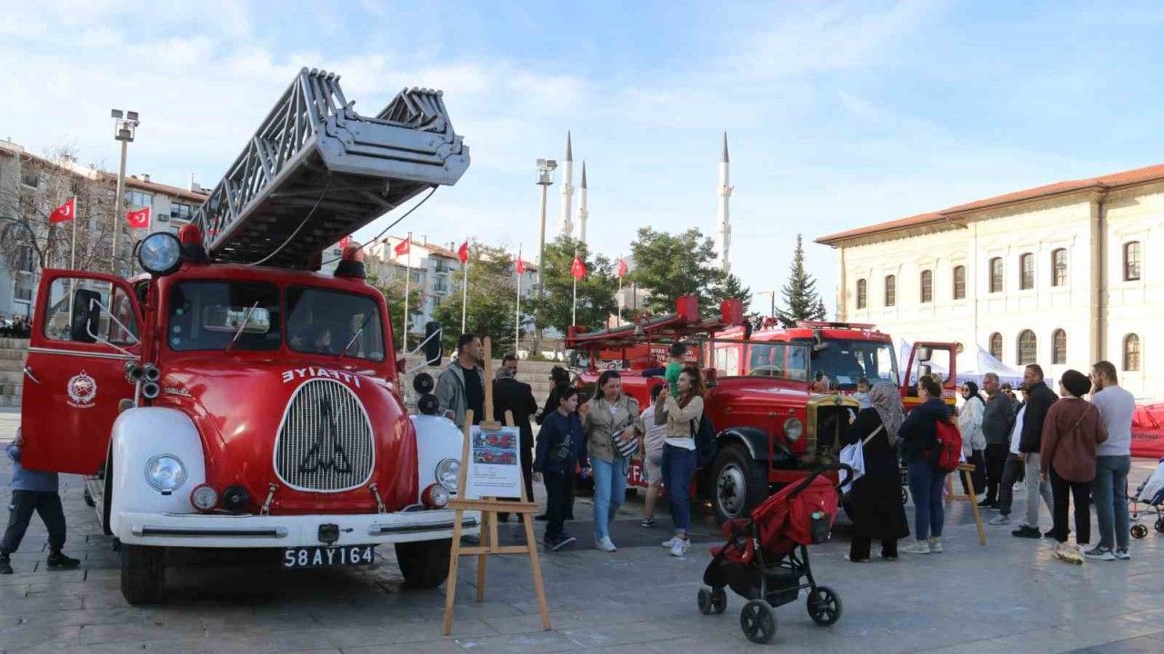 Sivas’ta İtfaiye Haftası kapsamında itfaiye araçları, ekipmanları ve antika itfaiye araçlarından oluşan sergi ziyaretçileriyle buluşuyor.