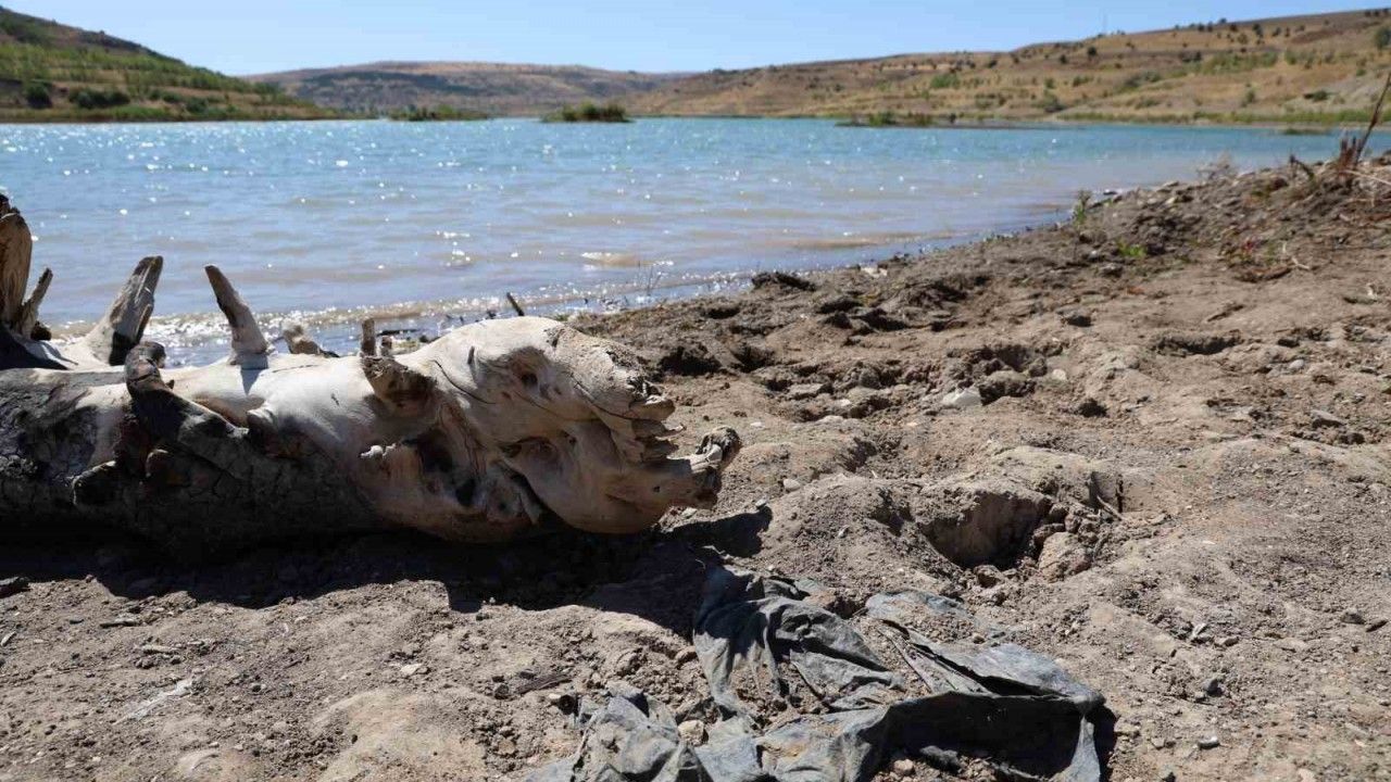 Sivas’ın önemli su kaynaklarından biri olan 4 Eylül barajında kuraklığın etkisiyle su seviyeleri önemli miktarda düştü, barajın zemini görüldü.
