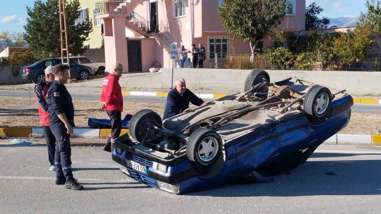 Sivas’ta meydana gelen trafik kazasında bir otomobil takla atarak ters döndü, kazada şans eseri yaralanan olmadı.
