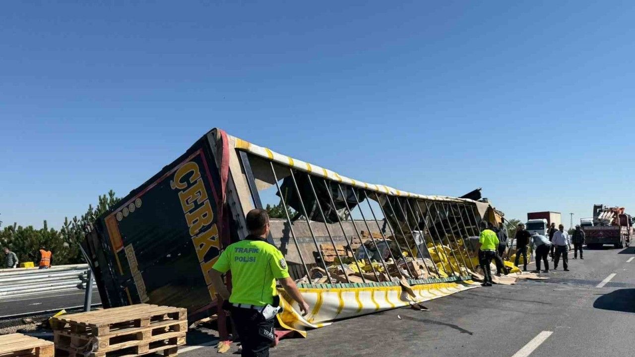 Afyonkarahisar’da sıvı yağ yüklü tır kontrolden çıkarak orta refüje devrildi.