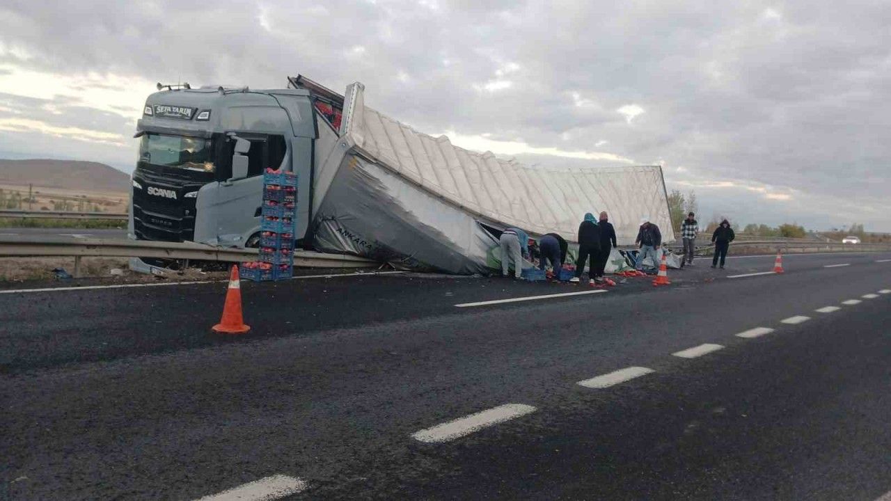 Kaza, ilçenin Ankara yönündeki kara yolu üzerinde bulunan TŞOF Sivrihisar Dinlenme Tesisi yakınlarında meydana geldi. Sebze yüklü 06 DNF 618 plakalı tır, ismi öğrenilemeyen sürücüsünün direksiyon hâkimiyetini kaybetmesi sonucu devrildi. Kazada tır sürücüsü hafif şekilde yaralanırken, araçtaki sebzelerin bir bölümü çevreye yayıldı. Olay yerine çağrılan sağlık ekipleri tarafından ilk müdahalesi yapılan yaralı sürücü tedbir amaçlı hastaneye kaldırıldı. Kaza nedeniyle bölgede kısa süreli trafik aksaması yaşanırken, devrilen tırın kaldırılması için ekipler tarafından çalışma başlatıldı. Olayla ilgili inceleme başlatıldığı öğrenildi.