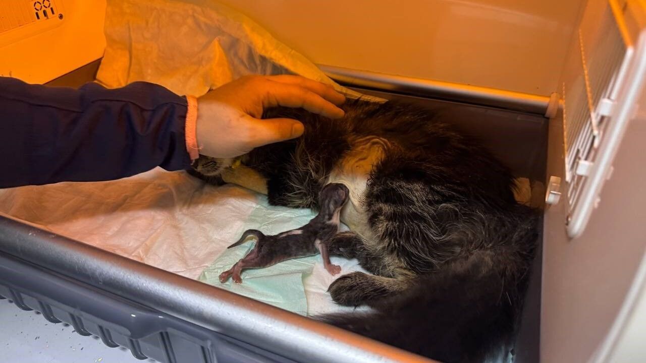 Hayvanseverler tarafından sokakta yaralı ve kanamalı halde bir kedi bulundu. Durumu fark eden hayvanseverler, vakit kaybetmeden kediyi veteriner kliniğine götürdü. Burada veteriner hekim Gökmen Koç tarafından muayene edilen kedi, acilen ameliyata alındı. Yapılan müdahalede kedinin karnındaki dört yavrudan üçünün hayatını kaybettiği belirlenirken, bir yavru canlı olarak kurtarıldı ve kuvöze alındı. Koç, yavru kedi için süt anne aradıklarını ifade etti.