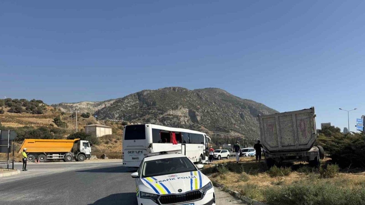 Kaza, Söke-Kuşadası Çevre Yolu üzerindeki kavşakta yaşandı. Edinilen bilgiye göre, seyir halindeyken freni tutmayan tır, aynı yönde ilerleyen gezi otobüsüne arkadan çarptı. Çarpmanın etkisiyle tır refüje çıkarken, otobüs ise yolda savruldu.