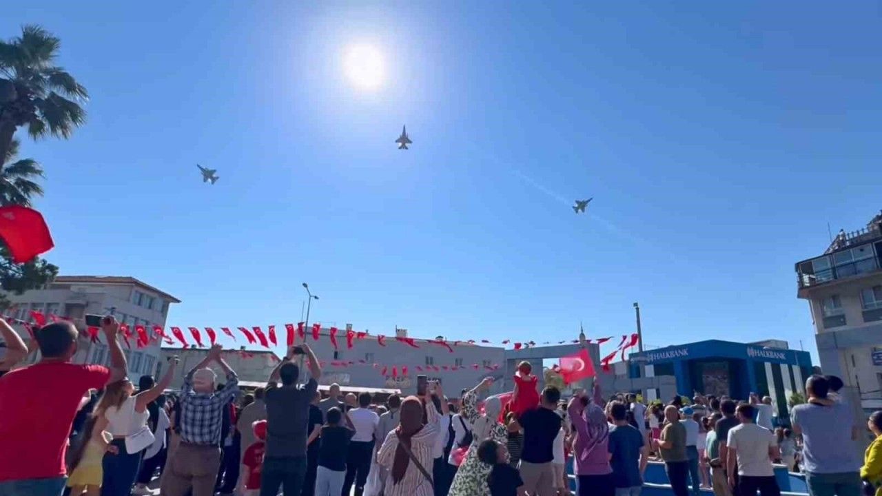 Cumhuriyet Meydanında toplanan halk, ilçe protokolü ile birlikte uçakların geçiş gösterisini izlerken, Söke’nin genelinden de izlenebilen geçişi vatandaşlar ev ve işyerlerinden de izledi. Uçakların çıkardıkları ses, geçiş sırasında yaptıkları manevralar vatandaşlardan bol bol alkış aldı. Özellikle alanda bulunun çocukların heyecanları görülmeye değerdi.
