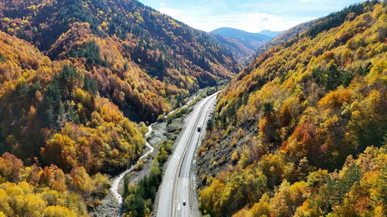 Kastamonu’da hava sıcaklıklarının düşmesi ile birlikte kuruyan ağaç yaprakları, sarı, kırmızı, kahverengiye büründü. Adeta renk cümbüşünün oluştuğu ormanlar kendisine hayran bırakıyor. Ilgaz Dağları eteklerinde ayrı bir güzelliğe bürünen ormanlar kartpostallık manzaralar sunuyor. Kastamonu-Ankara karayolunun Ilgaz Dağı kesiminde araçlarıyla yolculuk yapan vatandaşlar mest eden manzarayı görme fırsatı buluyor. Sonbahar ile ağaçların eşsiz buluşması havadan görüntülendi.