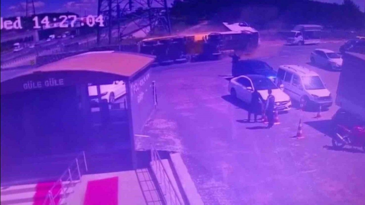Öte yandan hafriyat kamyonunun yolda bekleyen otomobilin üzerine devrildiği anlar güvenlik kamerasına saniye saniye yansıdı.