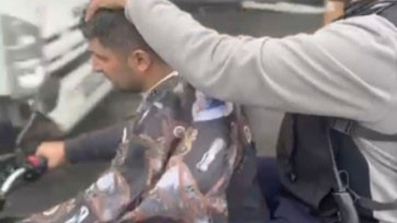 Olay, Sultangazi Cebeci Mahallesi’nde meydana geldi. Seyir halindeki bir motosikletin arkasında oturan berber, motosikleti kullanan arkadaşını tıraş etmeye başladı. Tehlikeli yolculuk sırasında berber, tıraş makinesiyle sürücünün saçlarını kısaltırken, bir yandan ise dengesini kaybetmemeye çalıştı. O anlar, trafikteki başka bir sürücü tarafından cep telefonuyla saniye saniye görüntülendi. Görüntülerde berberin, motosiklet hareket halindeyken saç kesimi yaptığı, sürücünün ise tıraşa rağmen motosikleti kullanmaya devam ettiği görüldü. Sosyal medyada da paylaşılan görüntüler, tepki çekti. İzleyenler, hem şaşkınlık yaşadı hem de tehlikeli hareket nedeniyle tepki gösterdi.
