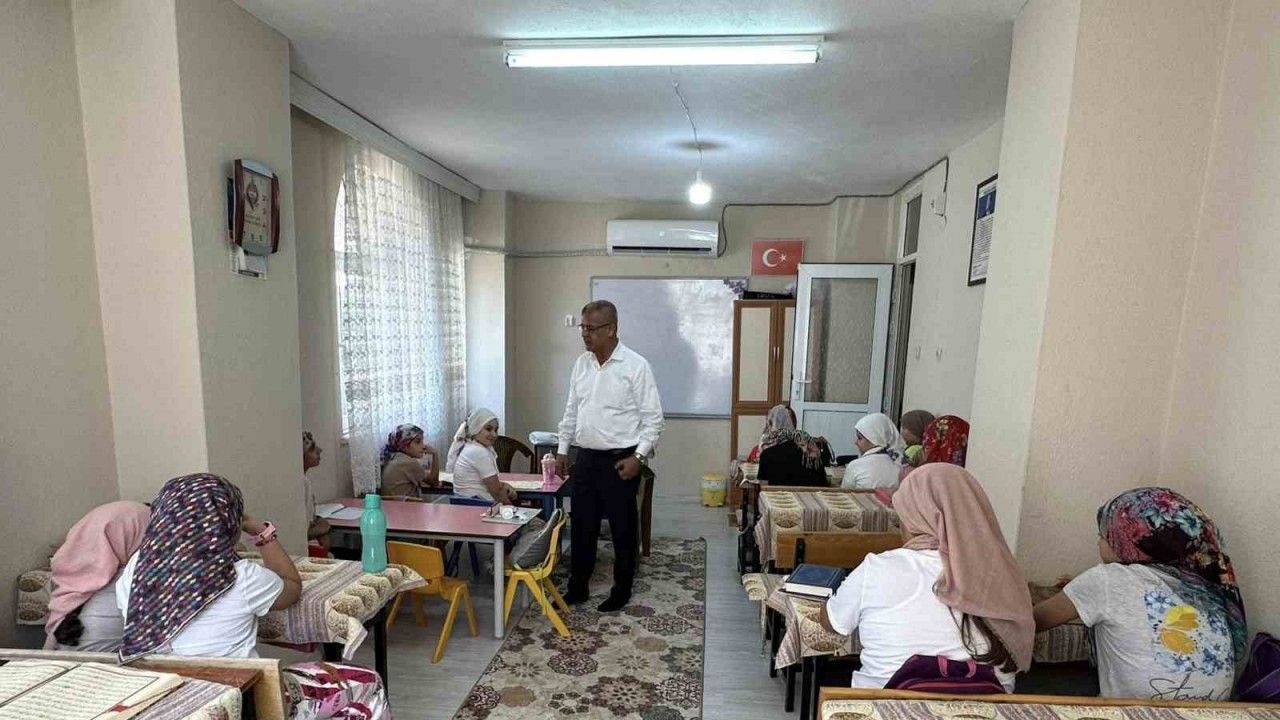 Aydın’ın Sultanhisar ilçesinde yaz Kur’an kursları yoğun ilgiyle devam ederken, Sultanhisar İlçe Müftüsü Yakup Şener Merkez Kız Kur’an Kursu’nu ziyaret ederek eğitim faaliyetlerini yerinde inceledi.