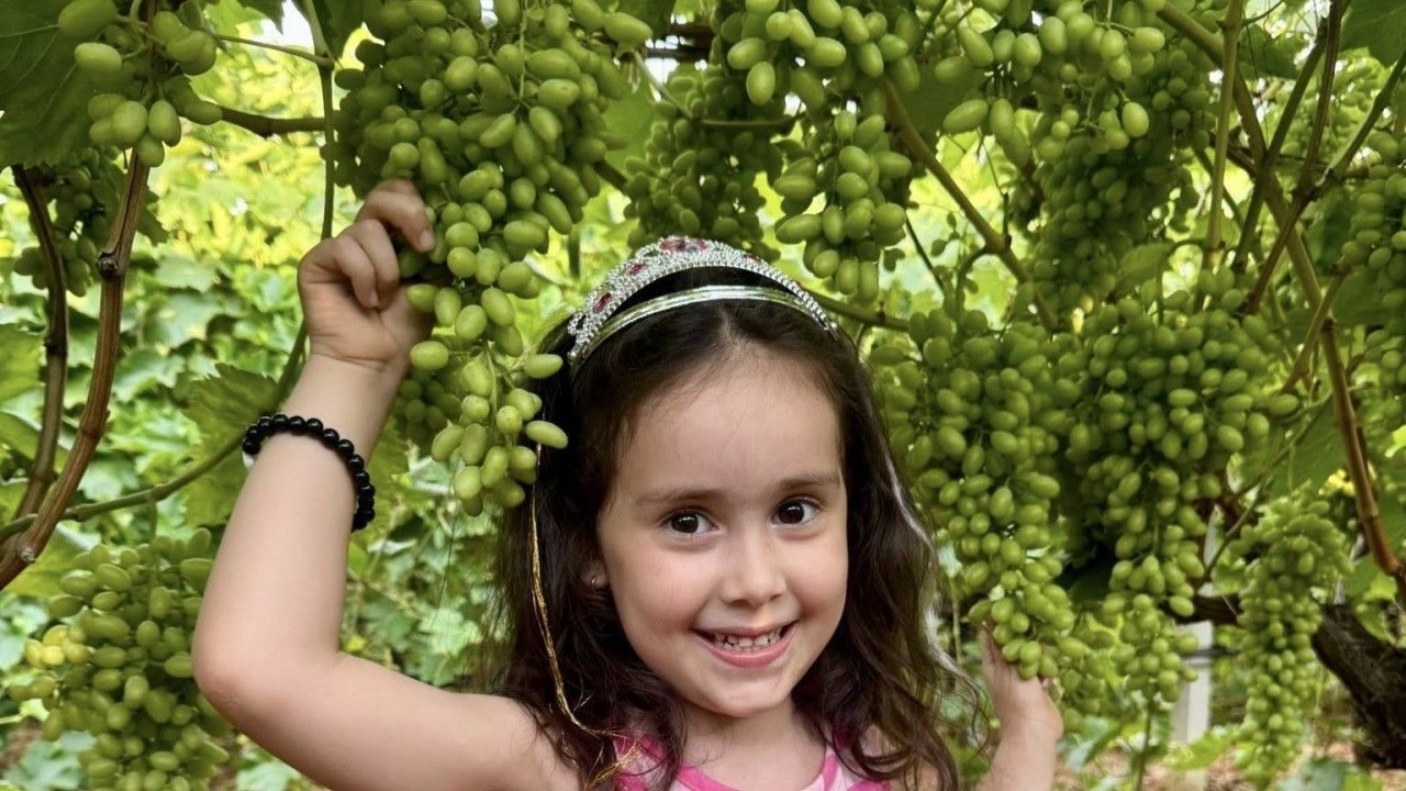 Sarıgöllü üzüm üreticisi ve serbest ziraat mühendisi Mustafa Çinkılıç’ın kızı küçük Gizem, bağda Sultaniye üzüm salkımlarının önünde başına taktığı taç ile çektirdiği fotoğrafla sosyal medyada büyük ilgi gördü.