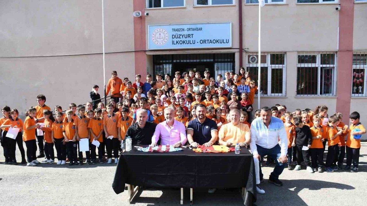 Türk futbolunun efsane golcüleri Tanju Çolak ve Hami Mandıralı, Trabzon’un Ortahisar ilçesinde bulunan Düzyurt İlkokulu ve Ortaokulu’nda öğrencilerle bir araya geldi.