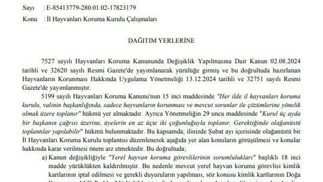 Tarım ve Orman Bakanlığı, 81 il valiliğine sahipsiz sokak hayvanlarıyla ilgili olarak yazı gönderdi. Bakanlık yazısında, sahipsiz sokak hayvanlarının toplatılması için belediyelere 2028’e kadar süre verildiği iddiası yalanlandı.
