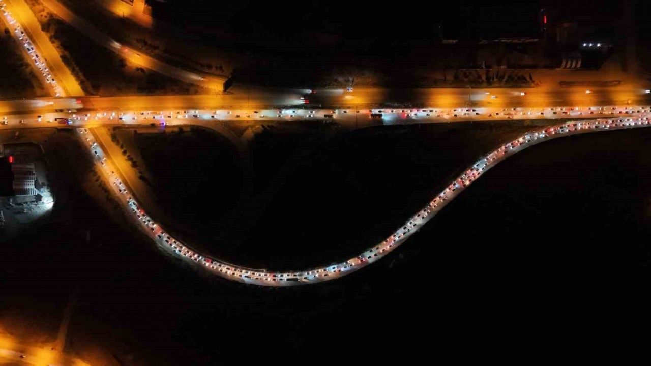 Kurban Bayramı’nın 3. gününde tatilcilerin dönüşe geçmesiyle birlikte 43 ilin geçiş güzergahı "kilit kavşak" Kırıkkale’de yaşanan trafik yoğunluğu havadan görüntülendi.
