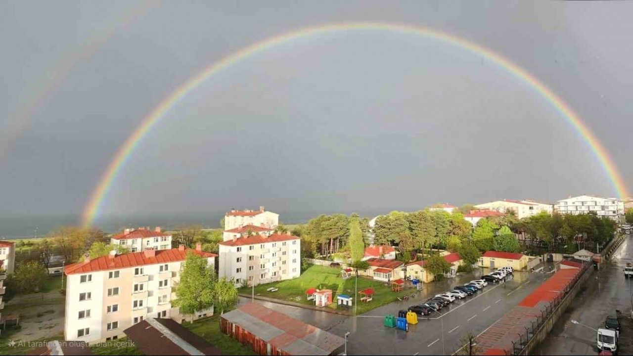 Bitlis’in Tatvan ilçesinde etkili olan yağmurun ardından gökkuşağı ortaya çıktı. Gökkuşağı izleyen mest etti. Vatandaşlar bu anları cep telefonlarıyla kaydetti. Çift gökkuşağının da zaman zaman belirdiği manzara, sosyal medyada da kısa sürede ilgi gördü.