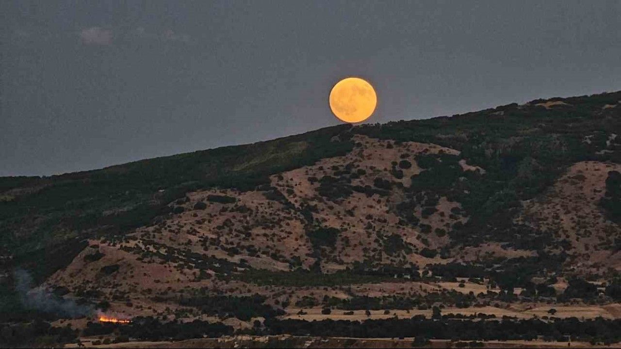 Van Gölü’nün sularına yansıyan devasa Ay, dağların ardından yükseldikçe önce kızıl renge büründü. Bir süre yarım ay şeklini alan ay, daha sonra tamamen kızıl tonlarına dönerek görsel bir şölen sundu.