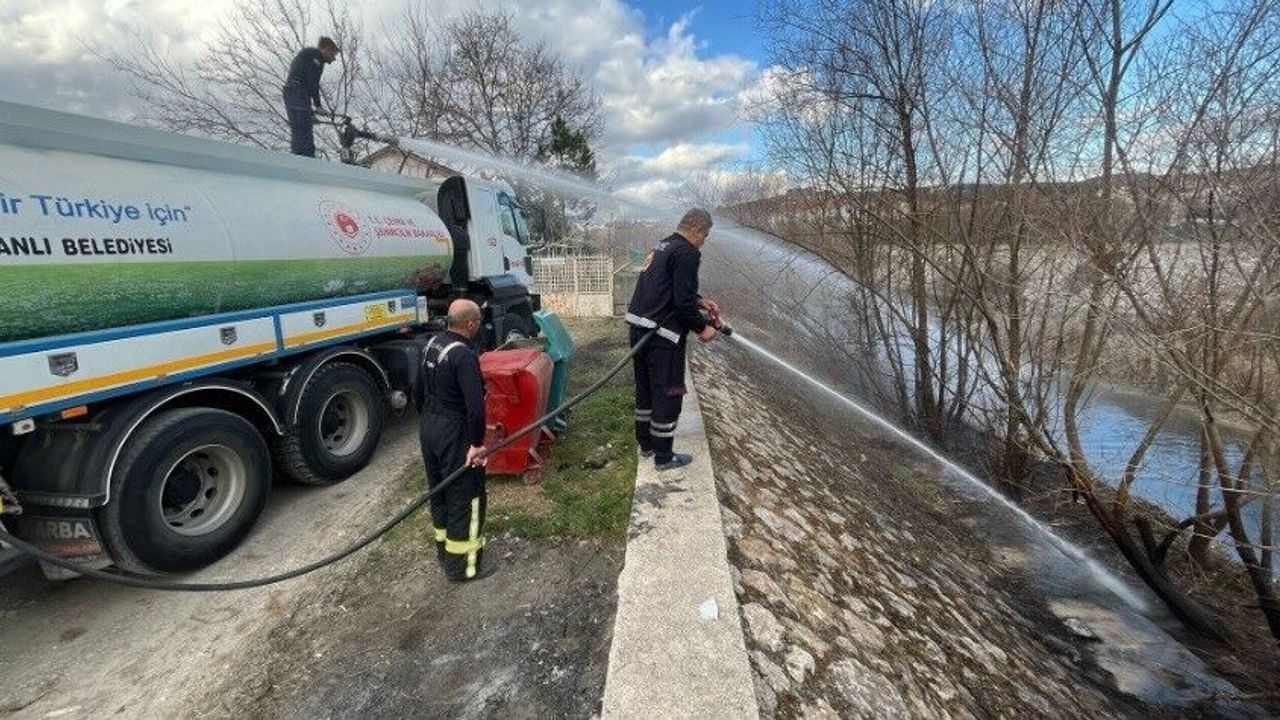 Kütahya’nın Tavşanlı ilçesinde dere kenarında çıkan ot yangını, itfaiye ekiplerinin müdahalesi ile söndürüldü
