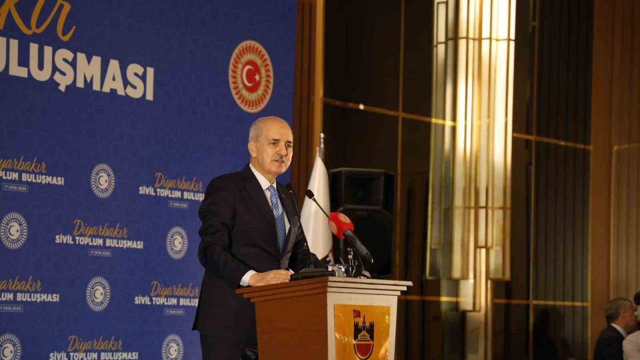 "Türkiye Büyük Millet Meclisi’nde de beş siyasi parti grubu, grubu bulunmayan altı parti yani Türkiye Büyük Millet Meclisi’ndeki arkadaşlarımızın bir kısmı da burada. 11 siyasi farklı siyasi parti bir araya gelerek sürekli bir mesai harcadı. Hakikaten fevkalade takdire şayan bir mesaiyle 5 Ağustos’tan bu yana 15 farklı oturum düzenledik. Toplumun farklı kesimlerinin insanlar dinlendi. Bu dinlenenlerin arasında STK’lılar, kanaat önderleri oldu. 16 STK temsilcisi de Diyarbakır ilimizden katılan yani Diyarbakır merkezli kuruluşlarımız vasıtasıyla dinlediğimiz arkadaşlarımız oldu. Herkes bir şey söyledi. Herkes kendi bulunduğu yerden, kendi anlayışı çerçevesinde söyledi ve herkes de saygıyla dinledi. Ama bir tek kişi bile artık barış olmasın savaşlar durmasın, bu terör bitmesin, Türkiye bu mücadeleyle, bu terörle yıllarını heba etsin diye kimseden bir teklif gelmedi. Herkes terörün bitmesini, silahların susmasını, kardeşliğin hakim olmasını isteyen temennilerde bulundular. Bir kısmı açık tekliflerde bulundular. Bunların hepsi de Türkiye Büyük Millet Meclisi’nin şu anda kayıtları altında, zabıtları altında büyük bir müktesebat oluştu. Değerli kardeşlerim, şunu söyleyebilirim, bu vesileyle hem bu komisyon öncesindeki çalışmalarımızda hem de komisyon sırasında dünyadaki birçok çatışma çözümleri örneklerini çok yakın tanımış oldum. Şunu rahatlıkla söyleyebilirim dünyadaki yani devletlerle örgütler arasındaki çatışmanın bitirildiği çözüm süreçlerinde ortalama 6 yılda, 7 yılda bazılarının ise daha yüksek uzun bir sürede geldiği noktaya Türkiye inanın ki işte Ekim 2024’ten alırsanız bir yılı aşmadan o süreyi oraya gelmiş oldu. Ve çok şükür parlamentoda bu konuyla ilgili bir komisyonun oluşması, bu komisyonun da partilerin hepsinin bir tanesi hariç hepsinin ortak iradesiyle oluşması fevkalade değerlidir. Şimdi geldiğimiz noktada daha dikkatli, daha titiz olmamız gereken bir sürece girdiğimizi açıklıkla ifade etmek isterim. Öncelikle bundan sonraki süreçte ortaya çıkmış olan bu fevkalade olumlu süreci ben inanıyorum bu salonda hemen herkes sürece olumlu yaklaşıyor. Öyle mi? Ama kusura bakmayın olsun diye isteyenler olduğu gibi olmasın diye de kenarda köşede bekleyenler var. Onun için dikkatli olacağız. Öncelikle birkaç şeyi bu sürece ilişkin sizin vasıtasıyla vasıtanızla da bütün Türkiye kamuoyuyla paylaşmak isterim. Herkes kullandığı dile dikkat etmek zorundadır. Karşımızdakini gelinen bu noktada incitmemek için, yanlış bir şey söylememek için, hatalı bir şey söylememek için herkesin diline dikkat etmelidir.’’